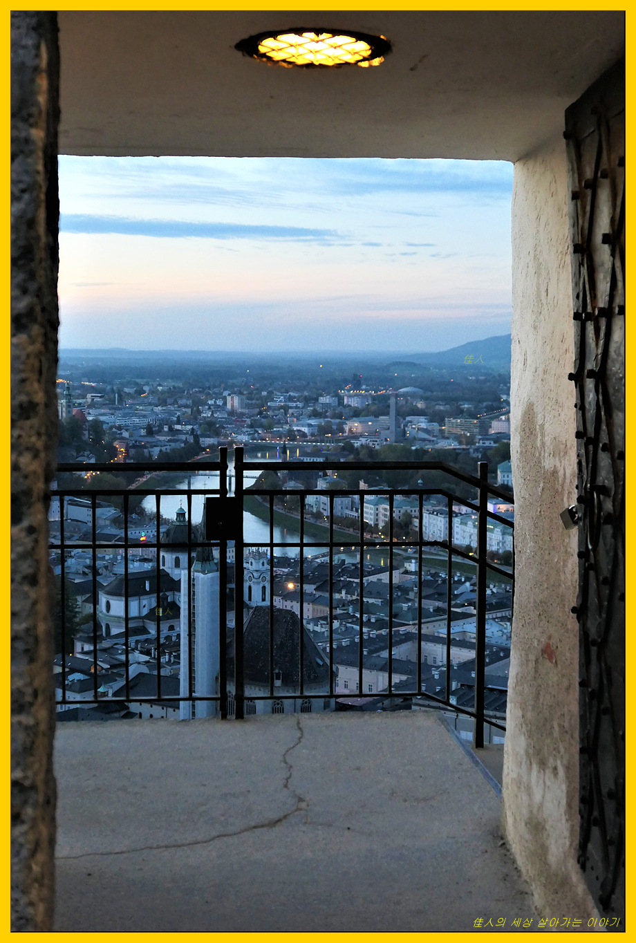 그곳으로 나가 바라보면 바로 위의 사진에 보이는 잘츠부르크 전경을 구경할 수 있습니다.