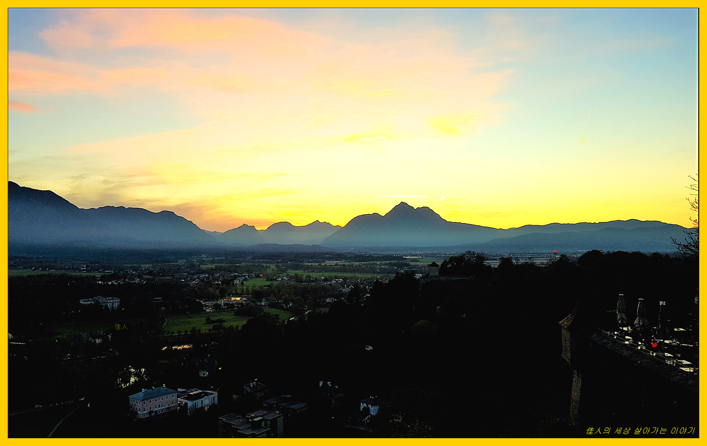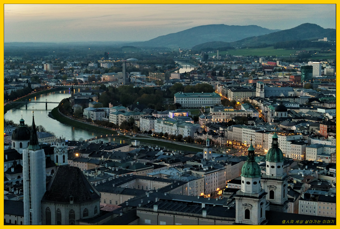 위의 사진은 호엔잘츠부르크 성에 올라 내려다보았던 해질 무렵의 잘츠부르크의 전경입니다.