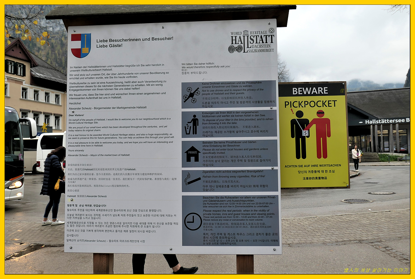 할슈타트는 마을을 통과하는 길이 워낙 좁고 혼잡해 버스는 들어가지는 않나 봅니다.