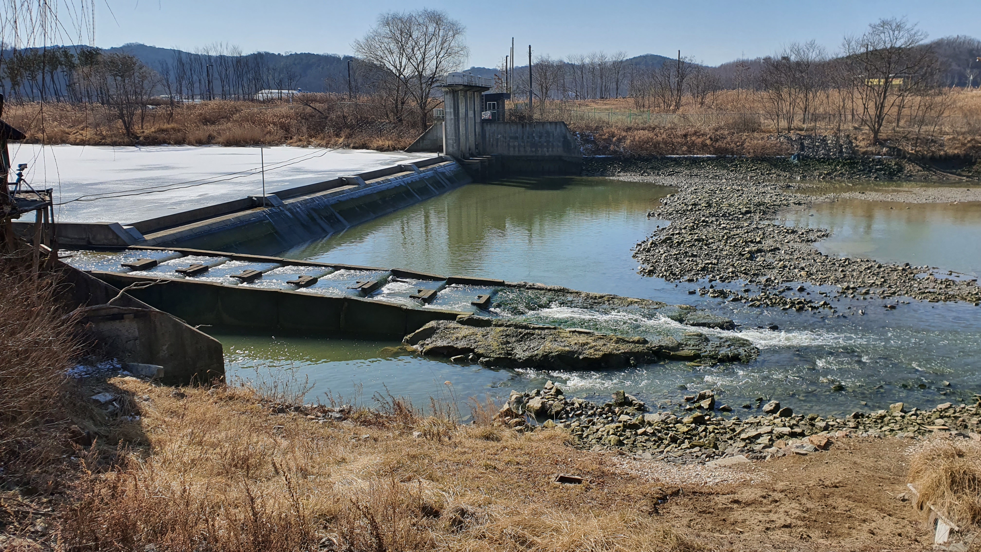 위의 사진은 보를 막이 물고기가 오르내릴 수 있도록 어도를 만들어 놓은 모습입니다.