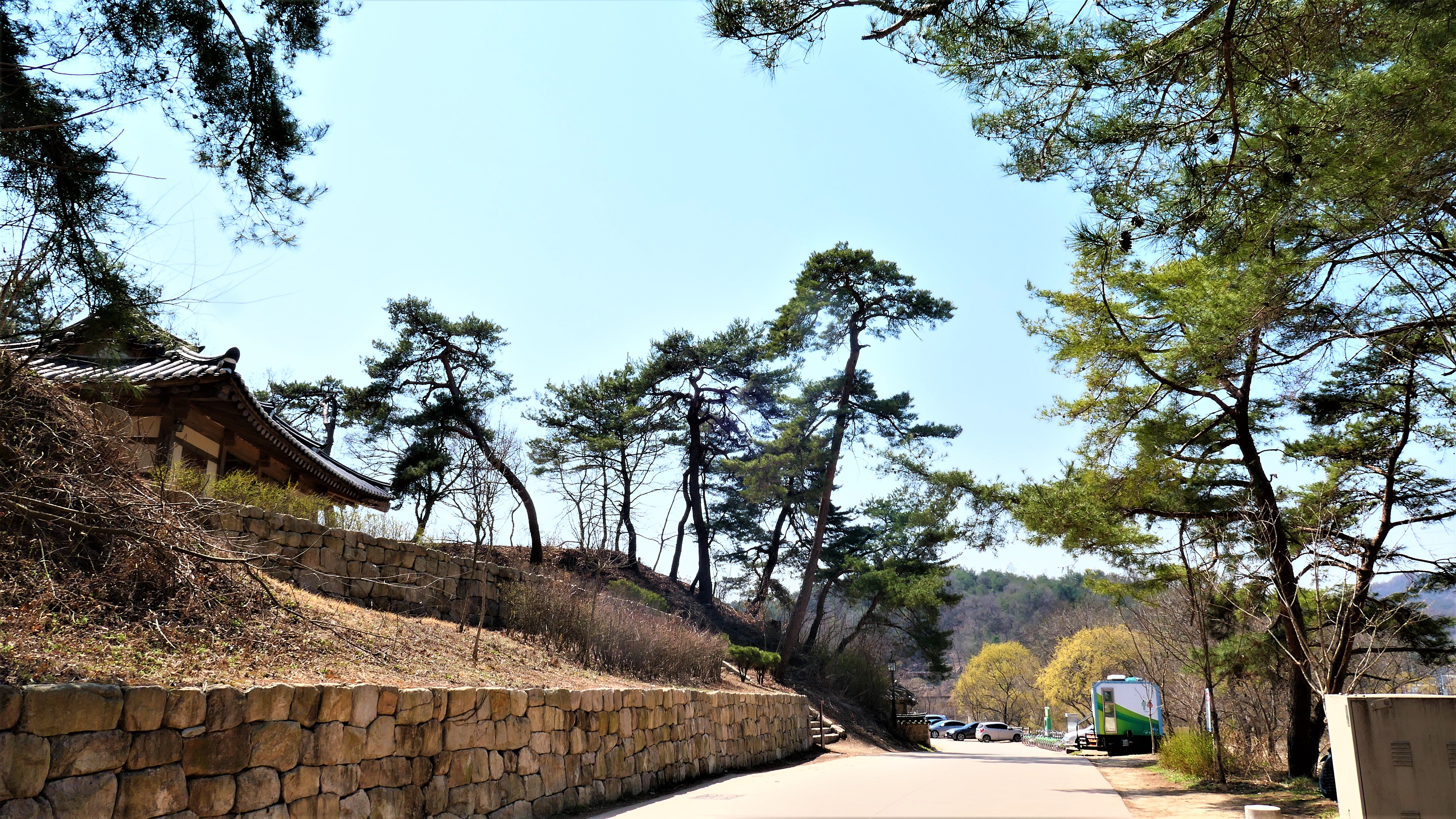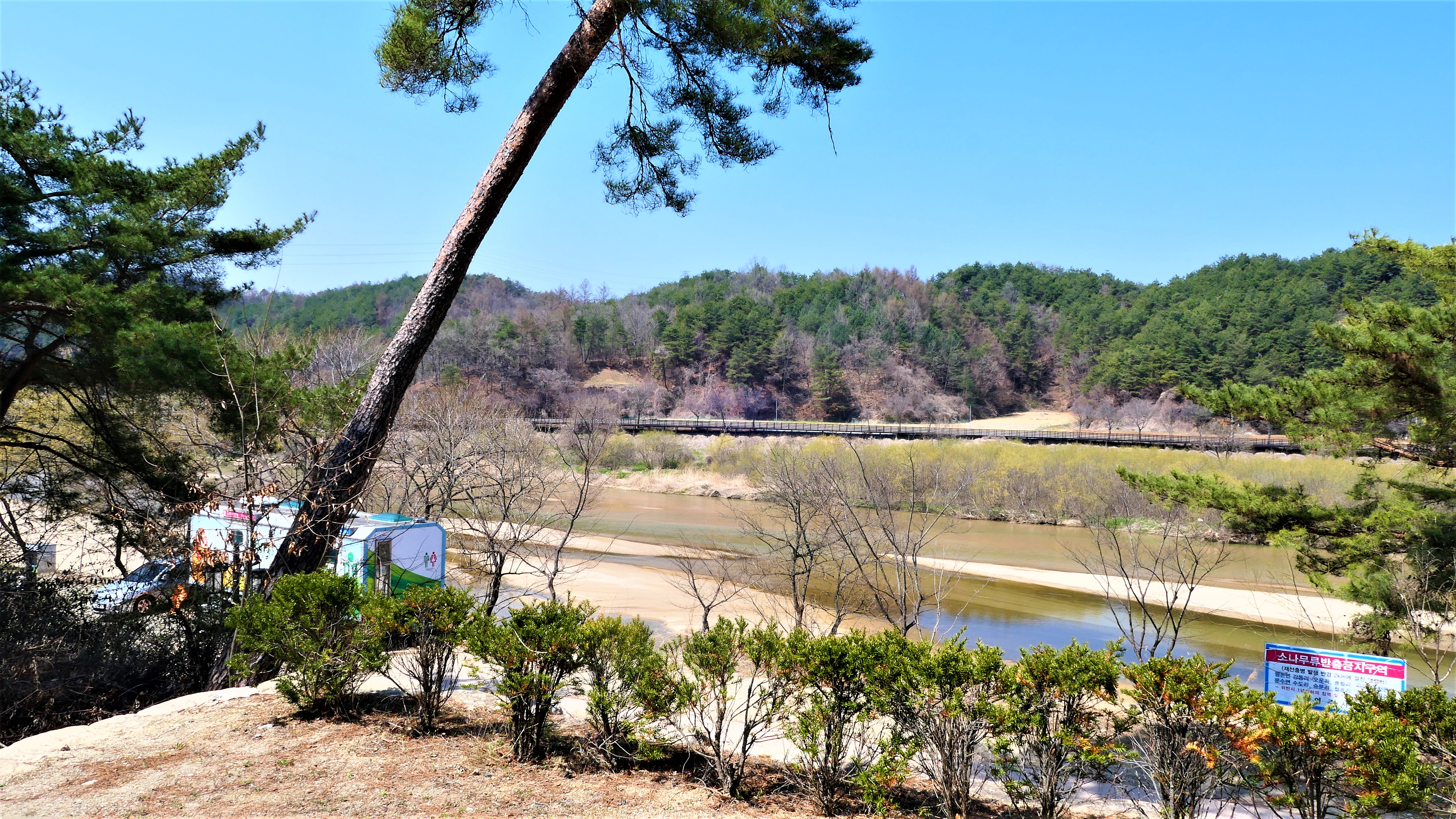자동차로 마을로 들어가는 콘크리트 다리를 건너면 왼편 뚝 위로 자동차를 수 십 대 정도 세울 수 있는