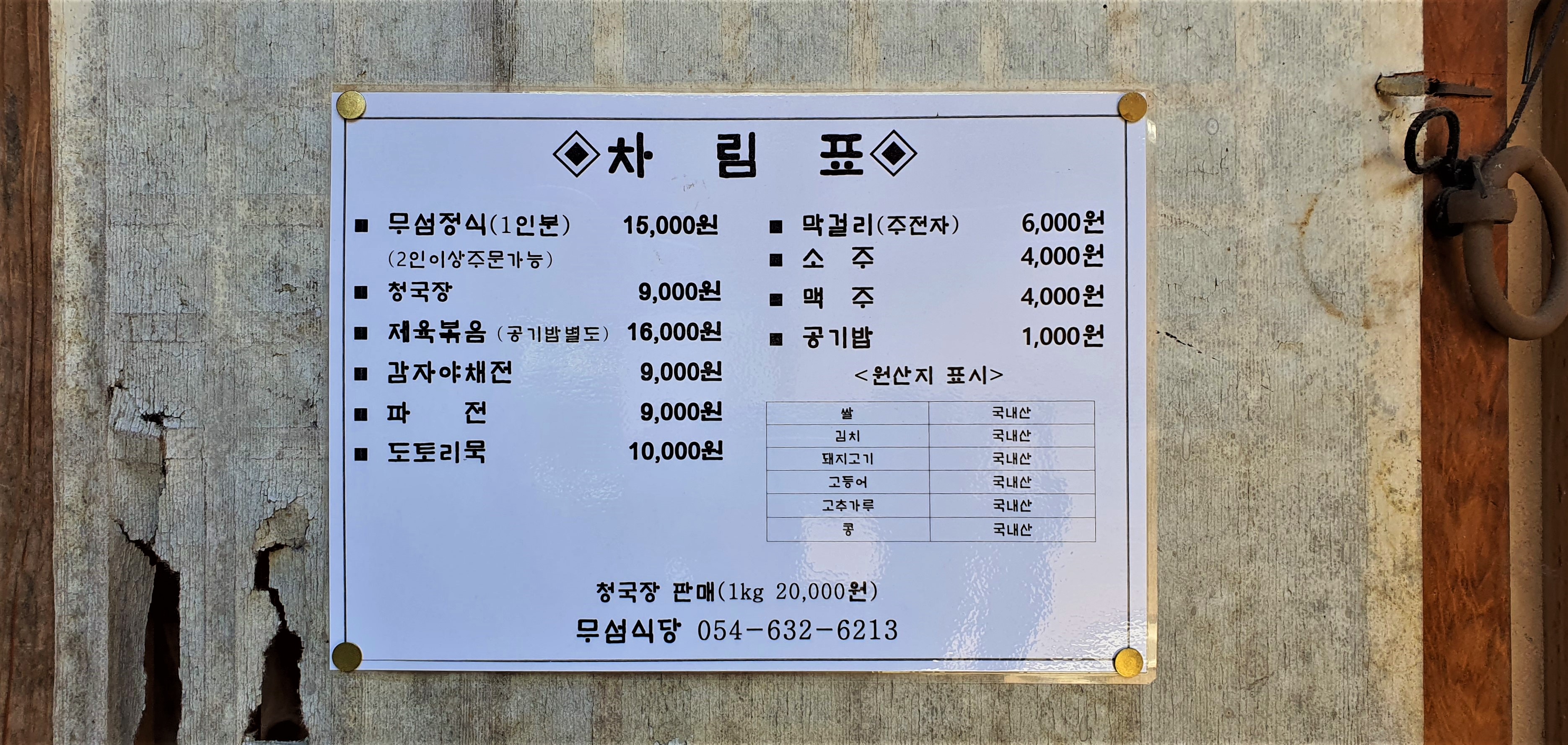 무섬마을에는 식당이 별로 보이지 않는데 오늘은 유일하게 이곳만 문을 열었네요.