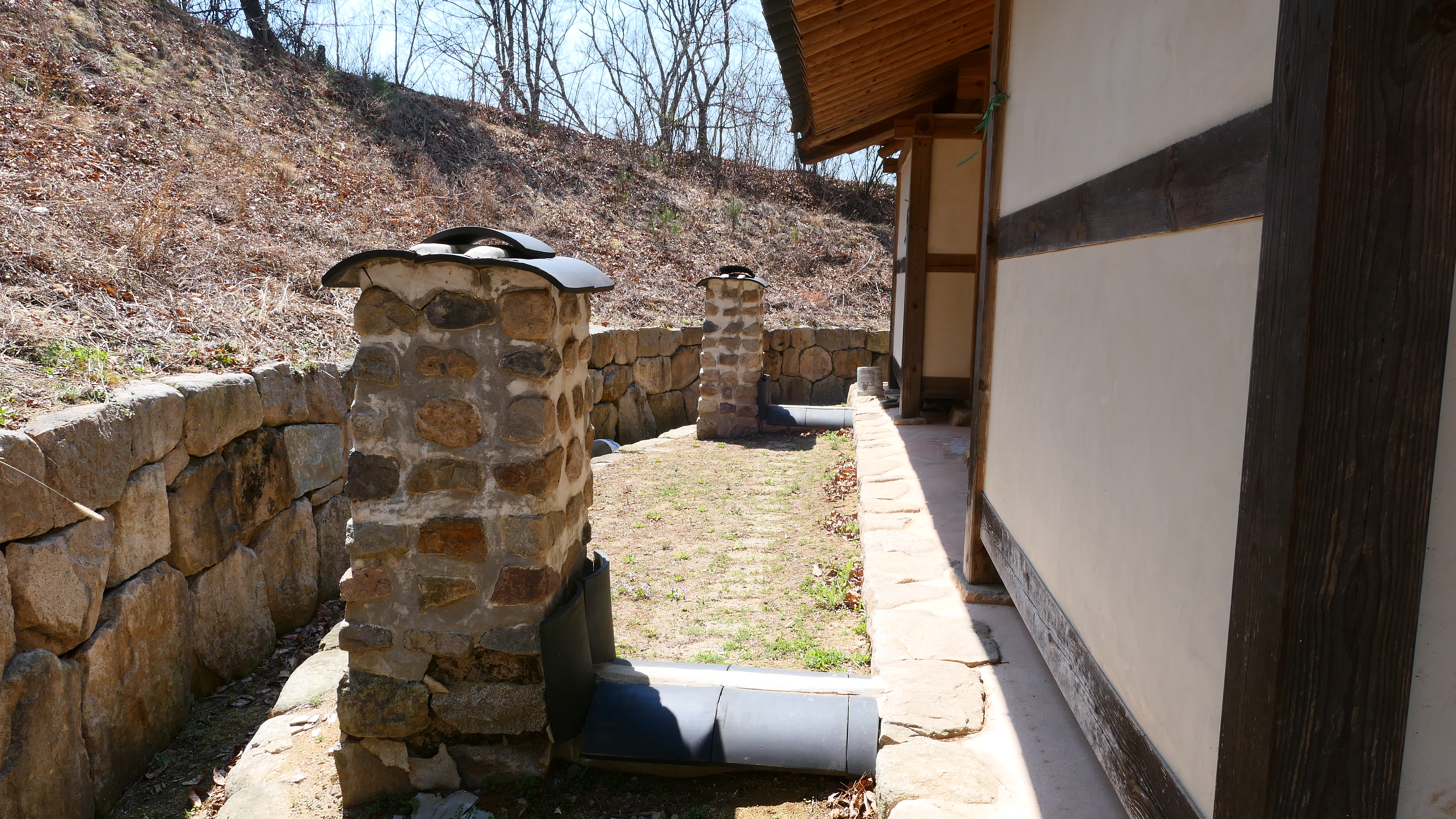 그러나 서당이나 서원 굴뚝은 대개 낮게 만들거나 기단에 가래 굴만 낸 경우가 많은데 여기는 다르네요.