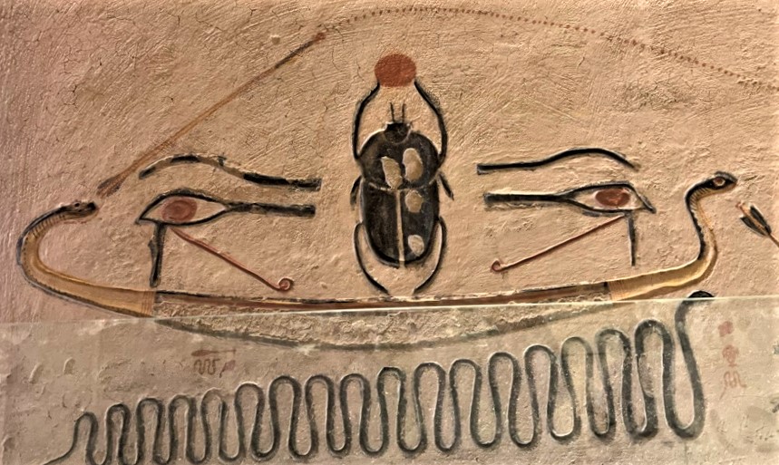 쇠똥구리 모습을 한 스카라베가 태양을 밀어내면 달이 뜨고 달을 밀어내면 태양이 뜬다고