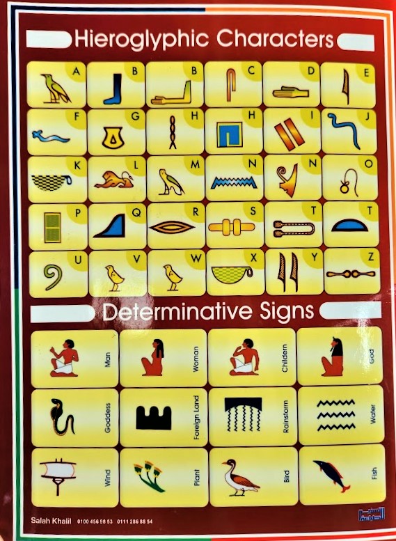 위의 사진 중 상단은 영어 알파벳과 이집트 고대 상형문자 대조표입니다.