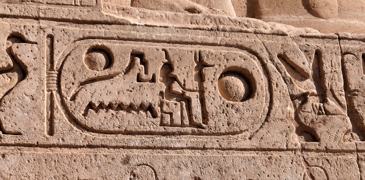 이런 문양은 신전에서 흔히 볼 수 있는 카르투슈(cartouche)라는 형태의 타원형 안에 글자를 넣는