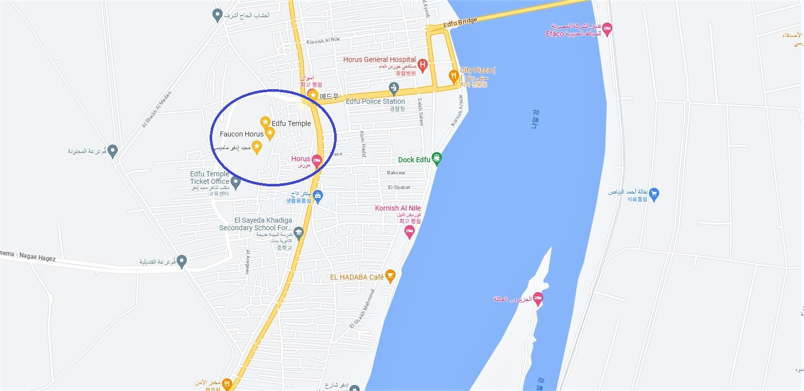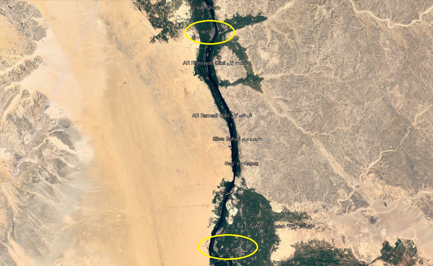 콤옴보 신전은 나일강 동안에 있고 에드푸 신전은 서안에 있습니다.