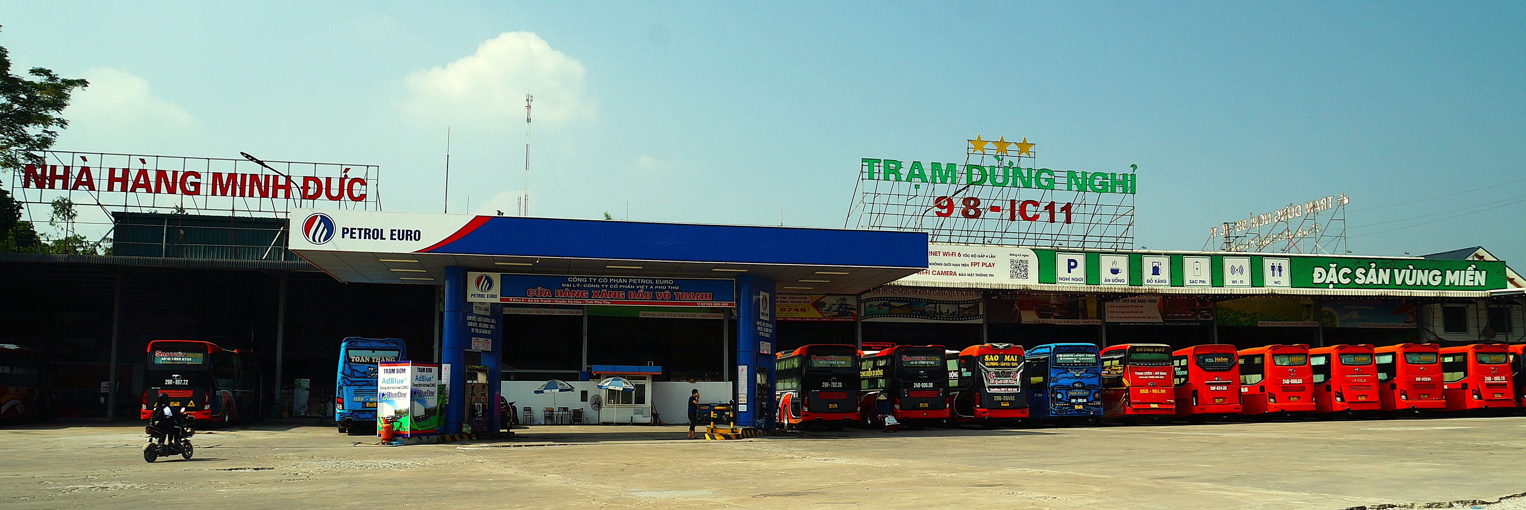 버스는 출발해 얼마 안 가서 북쪽에 있는 노이바이 공항 부근에 있는 정차장에 들립니다.